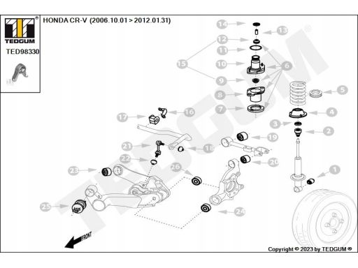 PODUSZKA SILNIKA TYŁ, ZA OSIĄ, GUMOWO-METALOWA PASUJE DO: HONDA CR-V II, CR-V III 2.0/2.2D/2.4 09.01-