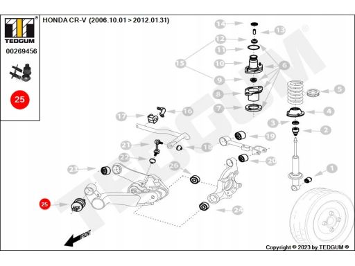SILENTBLOCK WAHACZA TYŁ L/P (TYŁ/Z PRZODU) PASUJE DO: HONDA ACCORD VII, CR-V III, FR-V 1.7-2.4 02.03-