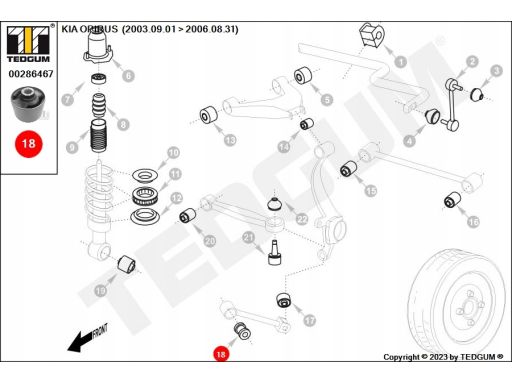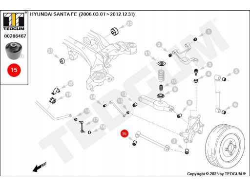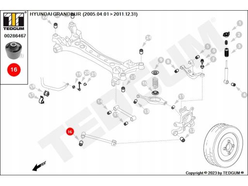SILENTBLOCK WAHACZA TYŁ L/P (TYŁ) PASUJE DO: HYUNDAI GRANDEUR, SANTA FÉ II, SONATA III, SONATA IV, SONATA V, KIA OPIRUS 1.8-3.8 05.93-12.12