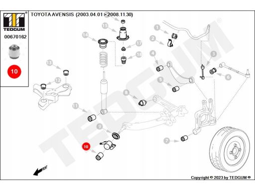SILENTBLOCK WAHACZA TYŁ (DÓŁ TYŁ) PASUJE DO: TOYOTA AVENSIS 1.6-2.4 03.03-11.08