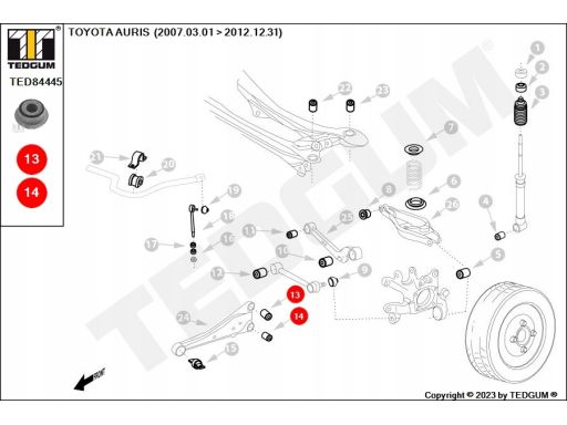 SILENTBLOCK WAHACZA TYŁ L/P (DÓŁ/GÓRA TYŁ/Z TYŁU) PASUJE DO: TOYOTA AURIS, AVENSIS, RAV 4 III 1.6-3.5 11.05-10.18
