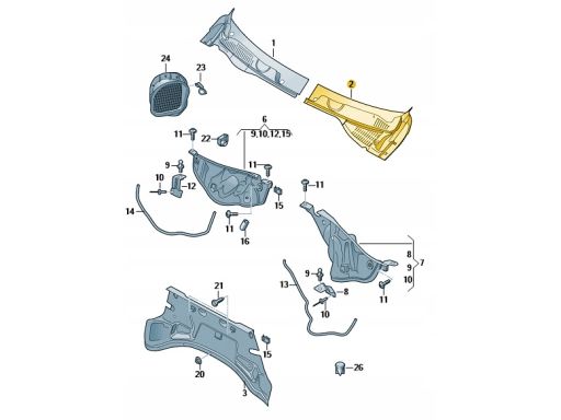 Element montowany po lewej stronie podszybia, którego zadaniem jest prawidłowe odprowadzanie wody z okolic szyby przedniej oraz komory podszybia, chroniąc elementy instalacji i komory silnika przed zalaniem.