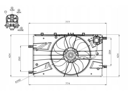 WENTYLATOR CHŁODNICY (Z OBUDOWĄ) PASUJE DO: CHEVROLET CRUZE, ORLANDO, OPEL ASTRA J, ASTRA J GTC, CASCADA, INSIGNIA A, INSIGNIA A COUNTRY, ZAFIRA C 1.3D-2.0D 05.09-
