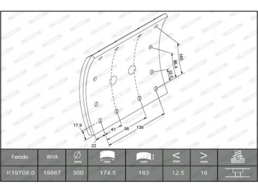 OKŁADZINA SZCZĘK HAMULCOWYCH PRZÓD/TYŁ (360X183. PODSTAWOWY) PASUJE DO: MAN M 2000 L, M 2000 M, M90, SM 11.87-