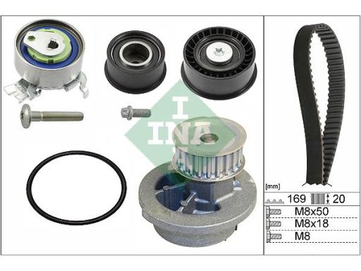 ROZRZĄD KPL. (PASEK + ROLKA + POMPA CIECZY) PASUJE DO: CHEVROLET CORSA, TIGRA, OPEL ASTRA F, ASTRA F CLASSIC, ASTRA F/KOMBI, ASTRA G/KOMBI, CORSA B, TIGRA, VECTRA B 1.4/1.6 03.93-01.05