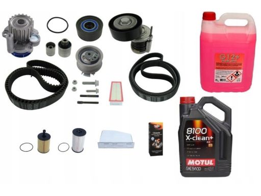 ROZRZĄD KPL. (PASEK + ROLKA + POMPA CIECZY) PASUJE DO: AUDI A3, A4 ALLROAD B8, A4 B8, A5, A6 C6, Q5, TT, SEAT ALTEA, ALTEA XL, EXEO, EXEO ST, LEON, TOLEDO III, SKODA OCTAVIA II 2.0D 05.03-07.18